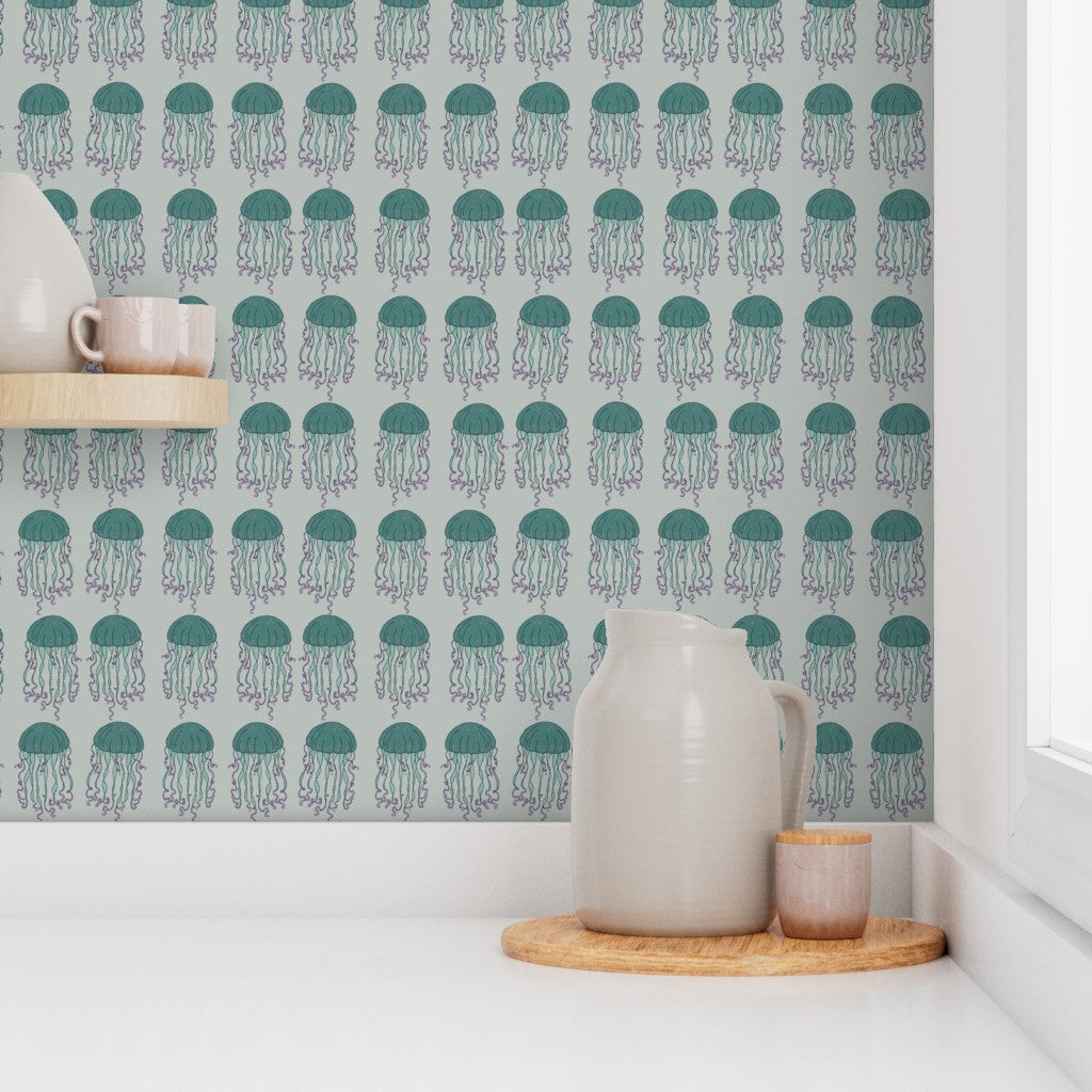Jellyfish explores softness and drift. The forms are intentionally simplified and loosely structured, allowing the pattern to feel light and suspended rather than graphic or bold. It’s meant to sit quietly on an object, adding interest without demanding attention.