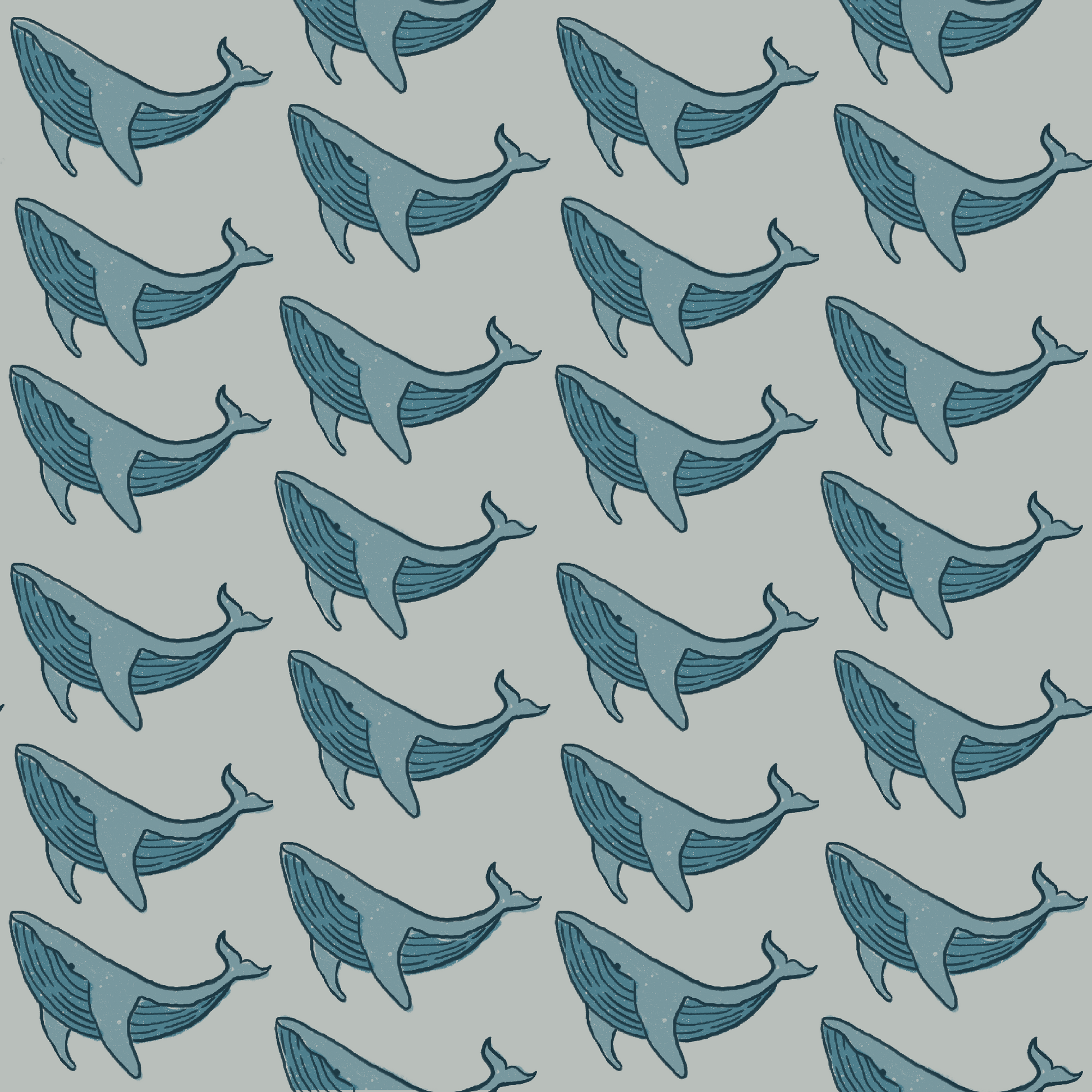Whale is a graphic interpretation rather than a literal depiction. The form is simplified to emphasize shape and rhythm, allowing it to repeat without becoming illustrative or playful. The goal is familiarity without novelty — recognizable but restrained.